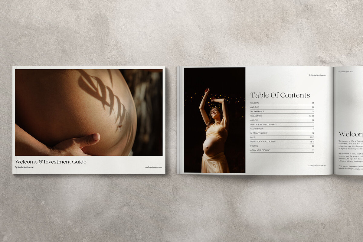 This template and companion are designed for maternity, motherhood, family, and newborn photographers who want to create an intentional, elevated client experience, without the overwhelm.